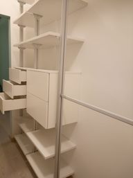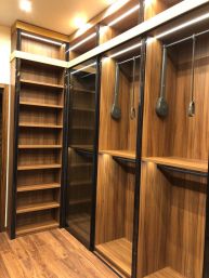 Стационарные и выдвижные полки для гардеробной помогут быстро найти нужный предмет, а небольшие ящички подойдут для хранения мелких вещей. Начинайте утро с любимой гардеробной, и каждый Ваш день будет удачным!