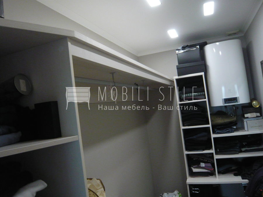 Гардеробная комната выполнена из ЛДСП Вудлайн Кремовый Н1424 ST22 (Egger, Австрия). Толщина 16 и 25 мм.