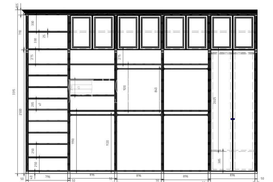 Высота антресолей 80 см, высота основной части 2 500 мм.