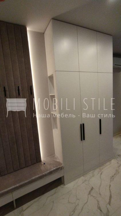 Внутри - ЛДСП 16 мм U775 st9 бело-серый (Эггер). Петли и направляющие Блюм c доводчиком, подсветка.