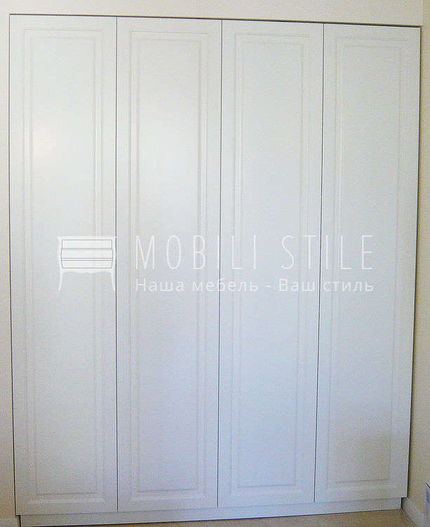 Фасады шкафа выполнены из МДФ окрашенного матовой эмалью итальянской компании ICA. Цвет эмали подобран по каталогу NCS- NCS S 0502 Y На фасадах выполнена классическая фрезеровка.