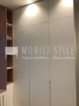 Фасады выполнены из плиты МДФ 19 мм. На основных фасадах выполнена фрезеровка тонкой фрезой в форме арки. Окрашивание эмалью цвета RAL 9003 с покрытием финишным матовым лаком.