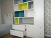 Для шкафа установлены разноцветные полки- вкладыши. Материал полок-вкладышей – плита МДФ толщиной 16 мм, окрашенная эмалью с финишным покрытием матовым лаком. Правый распашной фасад шкафа так же выполнен из плиты МДФ 16 мм с окрашиванием эмалью и финишным покрытием матовым лаком.