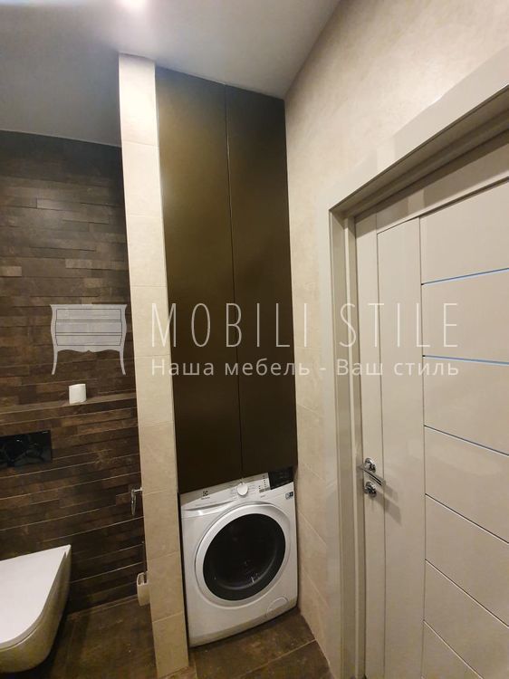 Фасады – плита МДФ 16 мм. Окрашивание по лицу по каталогу NCS S 8010-Y10R. Финишное покрытие матовым лаком. Тыльная сторона фасадов – белая.