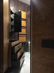 Верхний ящик ( L образный под сифон) установлен на скрытых направляющих неполного выдвижения Тандем с толкателем, нижний глубокий для белья полного выдвижения.