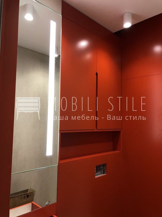Видимые детали корпуса, фасады выполнены из плиты МДФ, окрашенной в цвет по образцу. Финишная отделка – матовый лак.