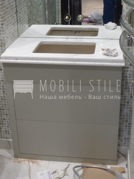 Внутреннее наполнение: ЛДСП Эггер Белый базовый W908 ST2. Ящики фигурной П-образной формы для установки сифона.